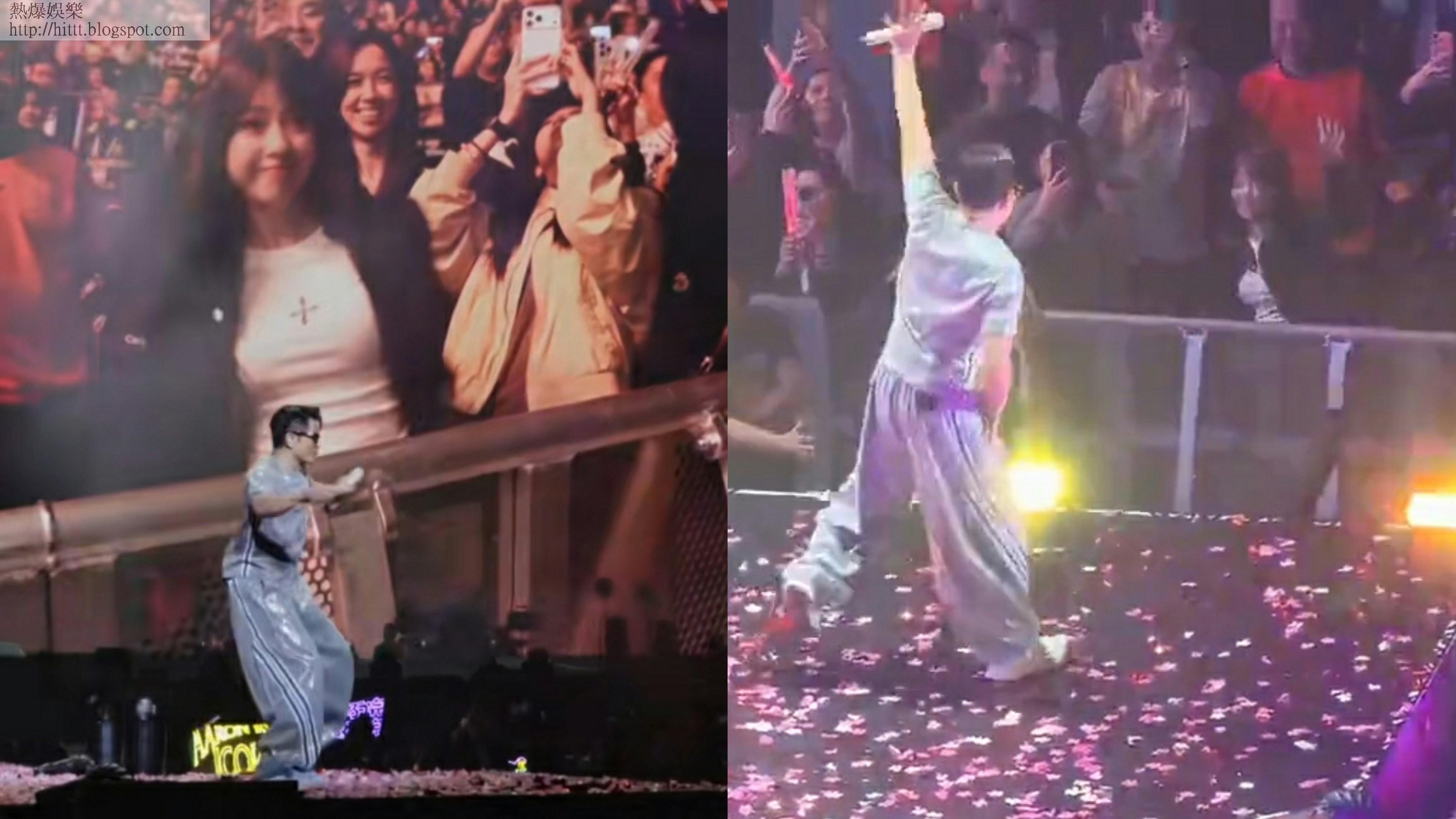 日前有網民於社交網分享了迎富城在其中一場廣州巡唱上,與台下一位靚女網紅互動跳舞的片段,而該名網紅自己也有上載她與郭富城隔空共舞的短片。該名網名叫「九十玖」的女網紅留言寫道:「是誰這麽幸運 和郭富城共舞 #郭富城演唱會 #郭富城廣州演唱會 #鯊魚舞 #挑戰郭富城同款鯊魚舞」。片中可見身穿白色貼身上衣配黑色外套的九十玖在台下望住台上的郭富城,兩人隔空一起跳舞,配合得異常合拍,郭富城的出色舞技自然不容置疑,而九十玖的出眾表現亦獲網民一致讚賞,指她面對天王巨星也毫不怯場,好搶鏡。從另一段以郭富城面向角度拍攝的片段可見,郭富城確實是對住九十玖跳舞,跳完後郭富城更大讚她說:「你跳得非常好,很棒,你叫什麼名字呀?」得知對方名字便說:「你好呀九十玖,ok謝謝九十玖」。