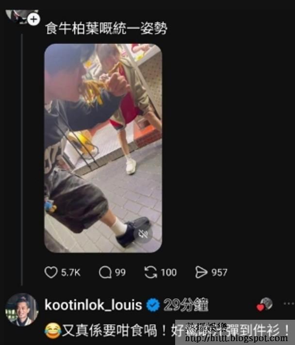 相隔十幾分鐘後,古仔又搭嘴另一網民的po,原來這位男網民分享吃牛柏葉的片段,片中的他俯身品嘗牛柏葉,吃得津津有味,並留言說:「食牛柏葉嘅統一姿勢。」古仔搞笑留言表示認同,他說:「又真係要咁食喎!好驚啲汁彈到件衫!」