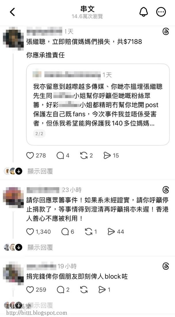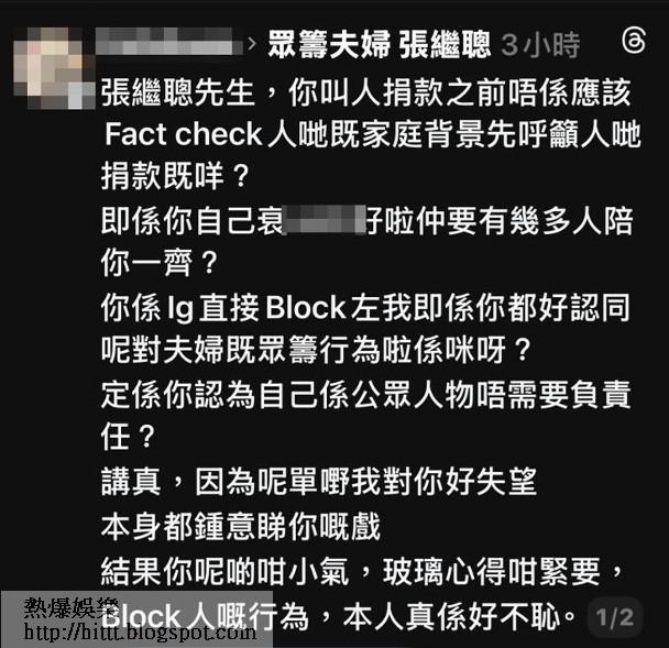有關消息流出後,張繼聰亦連累捱轟,大批網民湧入其社交網留言鬧爆,指他未fact check清楚就叫人捐錢變相「幫兇」,更叫他停止呼籲行為,甚至有網民聲討要他負上責任,補償捐錢損失,但張繼聰至今仍未回應事件。