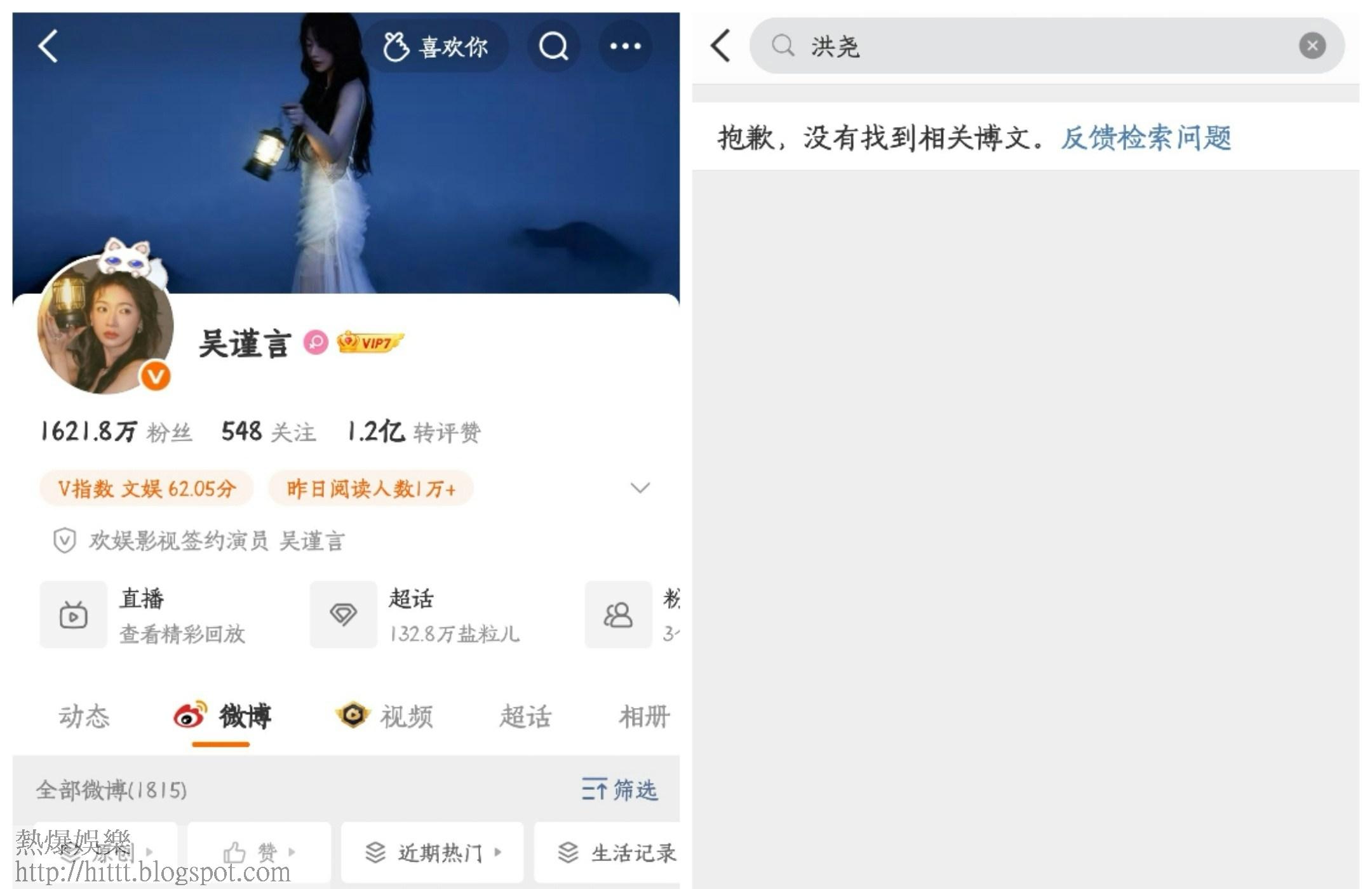吳謹言與洪堯因合作《延禧攻略》結緣,並於2024年9月無預警地公開宣布婚訊,隨後於2025年傳出誕下女兒的消息。然而,兩人的婚姻生活卻屢次傳出波瀾。就在結婚剛滿一年之際,曾有網民發現雙方社交平台上的結婚聲明貼文疑似隱藏或消失,一度引發外界對兩人感情生變的強烈猜測。