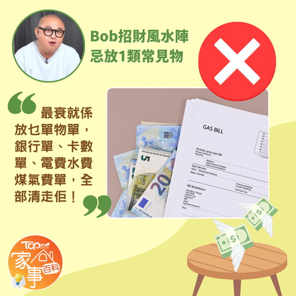 他又強調,放這5樣物品在餐桌之前,有一樣東西必需要注意:「餐枱請保持乾淨、整潔、整齊。」他直指最多人犯錯的就是將銀行帳單、卡數單、未結帳的單據,亂七八糟全部放在餐枱上,原來這些東西放上去,無意中進行了一種「貧窮儀式」,這些充滿壓力的東西對於財富中心來說,是一種能量上的毒藥,因此切勿擺放在餐桌上。