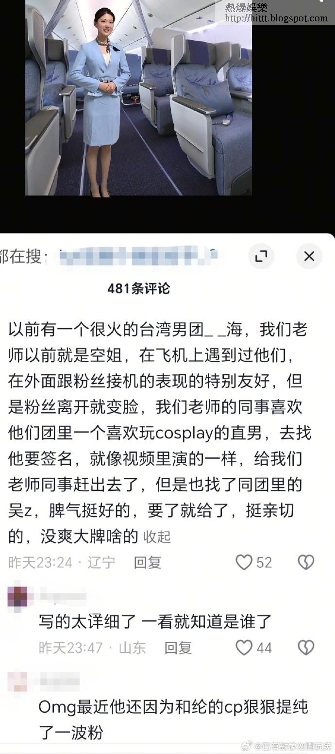 近日網上流傳一段針對汪東城的爆料,有自稱「空姐學生」的網民在評論區指控汪東城於飛機上耍大牌,指他「在外面跟粉絲接機的表現的特別友好,但是粉絲離開就變臉」。爆料者更聲稱其老師的同事曾上前索取簽名,結果「給我們老師同事趕出去了」,並對比同團的吳尊「脾氣挺好的,要了就給了,挺親切的,沒耍大牌啥的」。此番言論隨即在各大社交平台掀起熱議,不少網民對爆料真實性持懷疑態度,認為飛機是藝人休息空間,不應被打擾。
