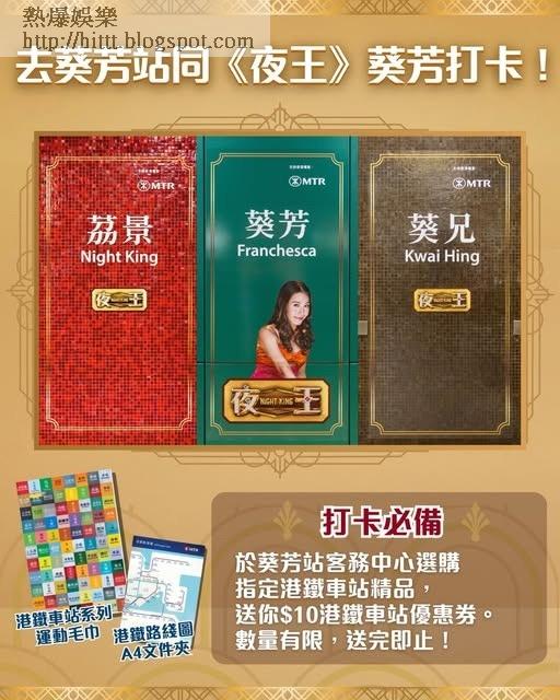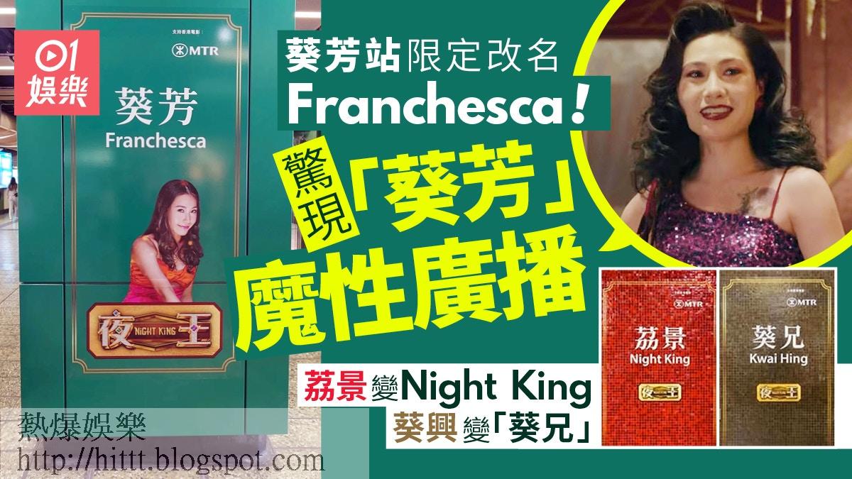 沒想到港鐵官方竟然真的「聽大眾訴求」,為葵芳站換上期間限定新裝改名為「Franchesca」!更在葵芳站客務中心發售精品送優惠券,隨即吸引大批影迷前往打卡。除了葵芳地鐵站站名大變身,港鐵更將葵芳站前後2個站名字都作改動,荔景站變成《夜王》英文片名「Night King」、葵興站就改成「葵兄」。
