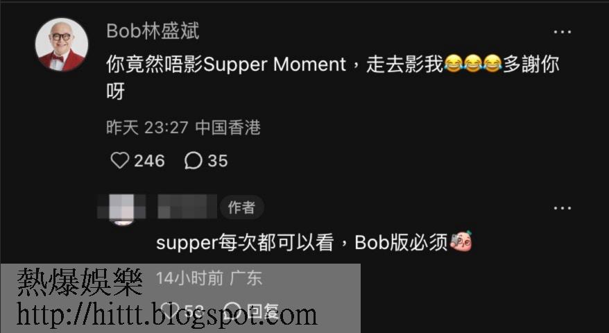 Bob幽默回應:你竟然唔影Supper Moment?
