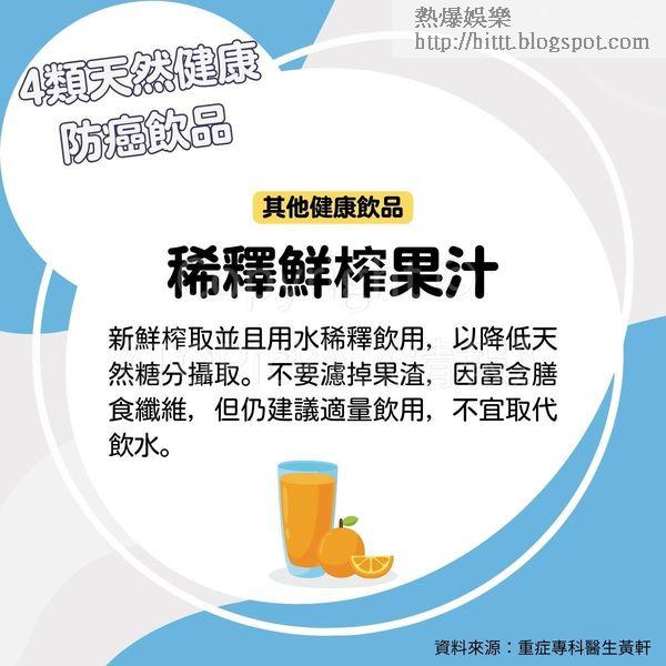 黃軒醫生提醒,選擇健康的飲品對防癌至關重要。他建議日常可多喝一些不含糖、不含酒精、不過燙、非加工果汁的天然飲品。