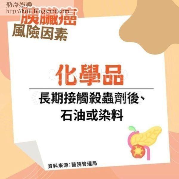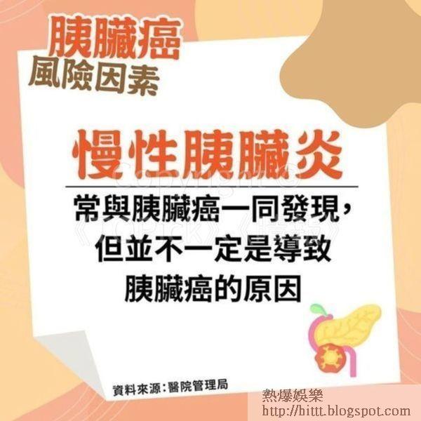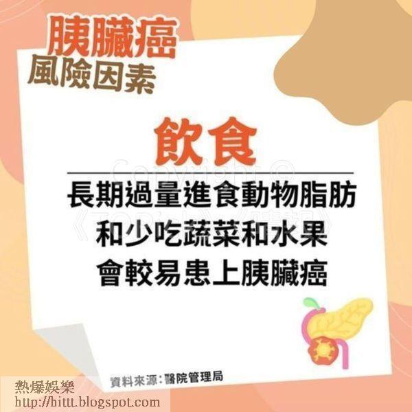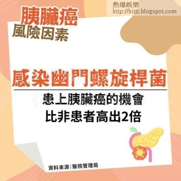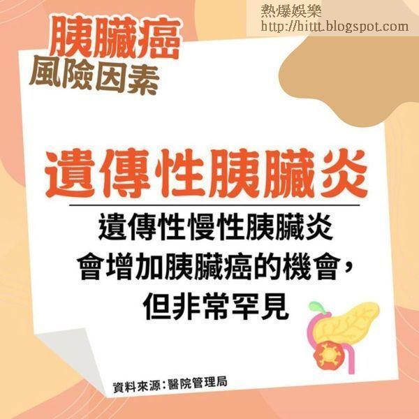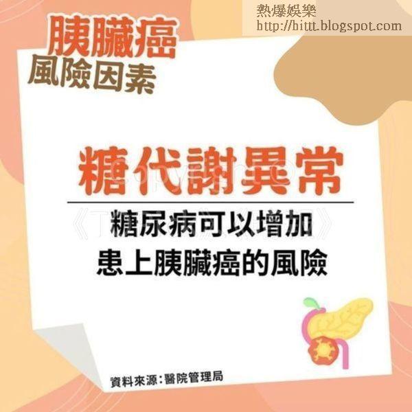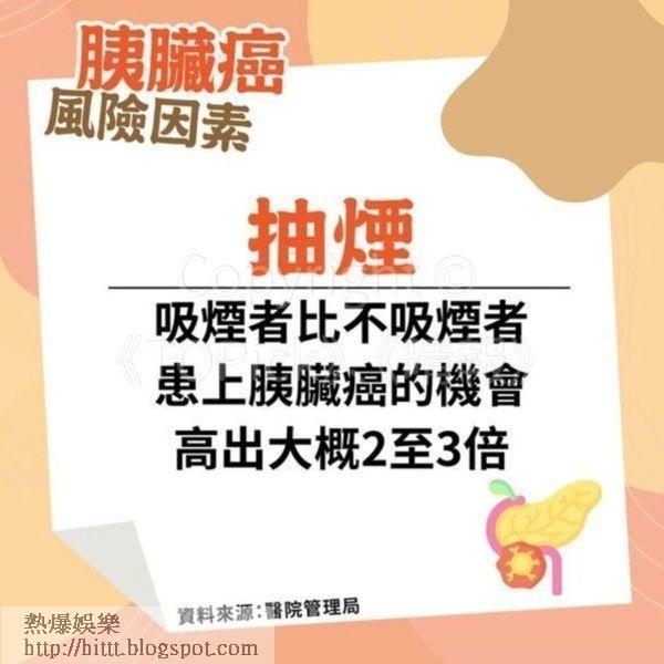 他亦強調本身患有糖尿病或有吸煙習慣人士,要格外留意身體狀況,因糖尿病患者患上胰臟癌的風險,比一般人高約2倍;而吸煙人士甚至高達2至3倍。