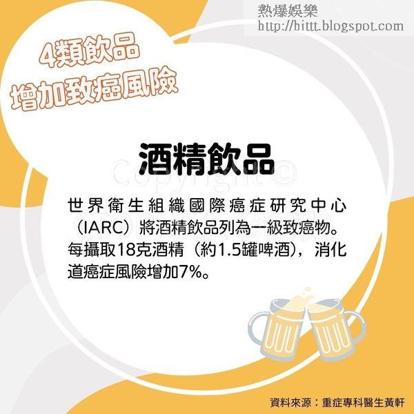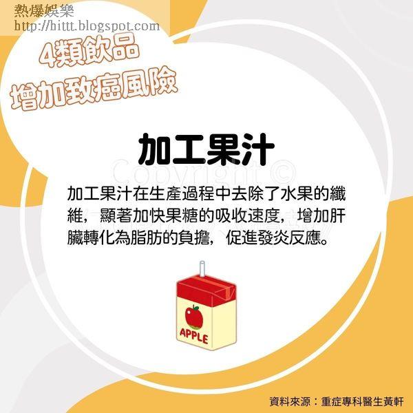 - 含糖飲料、酒精、過熱飲品、加工果汁恐增罹癌風險