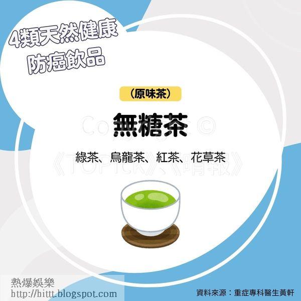 - 飲用無糖茶、清水、無糖咖啡等有助降低罹癌風險