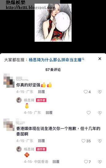 面對網上的「平反」聲浪,楊思琦至今未有正面回應,依然如常在抖音直播賣唱搵錢。日前思琦在抖音分享一段心靈雞湯格言:「花會沿途盛開,以後的路也是」,並寫道:「祝福你的人生從此與眾不同,把握生命裡的每一分鐘,全力以赴我們心中夢!」有網民在帖文下心疼留言:「香港媒體現在說全港欠你一個抱歉,但十幾年的委屈啊。」楊思琦罕有回覆一個揮春emoji,寫著一個「福」字。 雖未直接提舊事,但亦可看到她豁達的態度。
