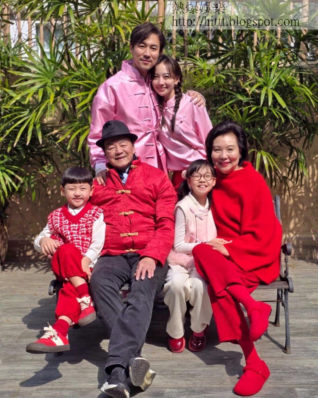 譚俊彥於社交媒體上載與父親狄龍及對兒女的合照,一家六口三代同堂。(譚俊彥IG圖片)