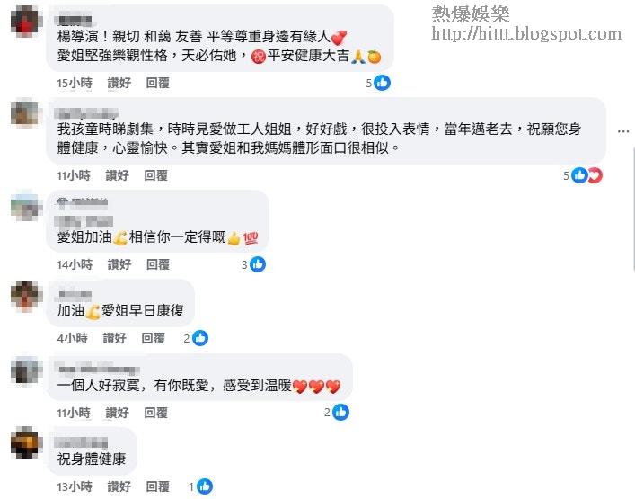 網民紛紛留言祝願愛姐能減輕病痛,早日康復並安享晚年。(Facebook截圖)