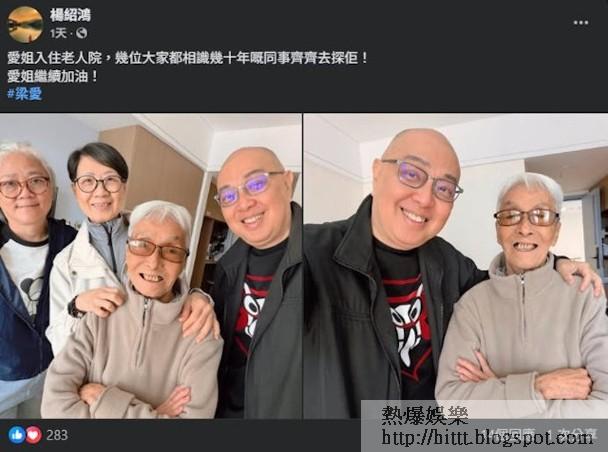 有「御用工人」之稱梁愛已年屆87歲,她去年不幸確診胰臟癌,但她選擇以豁達態度面對,拒絕化療,決意與癌共生。可是病魔的侵蝕使其身體狀況急轉直下,體重更一度暴跌至不足70磅,變得骨瘦如柴,令人痛心。由於患癌後,她已無法自理生活,梁愛現時入住深圳一家老人院接受照顧。從其好友楊紹鴻分享的探病照中可見,梁愛雖然身形極度單薄,坐在輪椅上顯得非常虛弱,但仍可與昔日朋友聊天,楊紹鴻在社交網表示:「你唔止堅,仲係好強!總之你一定要加油!」又呼籲所有朋友為她打氣。