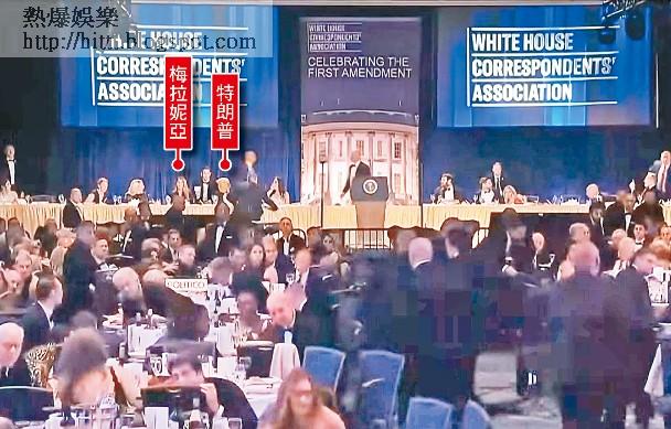 特朗普當晚與第一夫梅拉妮亞等人一同出席晚宴,坐在宴會廳主席台上,踏入8時35分左右場外傳來槍聲。網上流傳片段可見,特朗普獲告知發生槍擊事件後,在旁梅拉妮亞等人露出驚恐表情,多名穿禮服特勤局人員隨後趕至,從多個方向上台掩護總統,另有多名全副武裝人員到場。特朗普在多人護送下離開,期間懷疑一度摔倒,萬斯則被強行扶離現場,台下不少賓客躲在桌下。