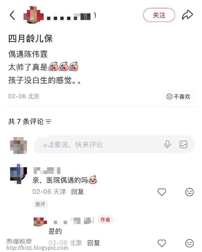 除了打疫苗,陳偉霆在日常育兒中也絕不缺席。不少網民曾多次在公園偶遇陳偉霆與何穗帶小朋友出來玩,更有網民在醫院目擊陳偉霆帶兒子進行兒童保健檢查,身邊甚至沒有保母或老婆何穗同行。這種親力親為的態度,被路人大讚陳偉霆是非常罕見且負責任的好爸爸。
