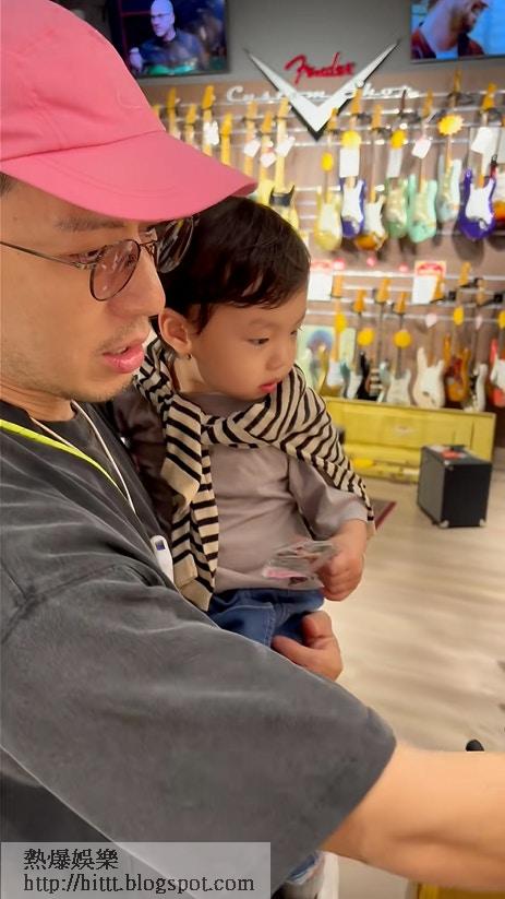 袁偉豪化身廿四孝爸爸帶仔逛琴行。(小紅書@張寶兒Bowie)