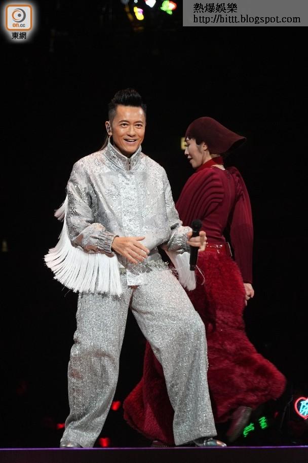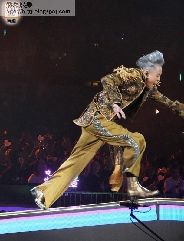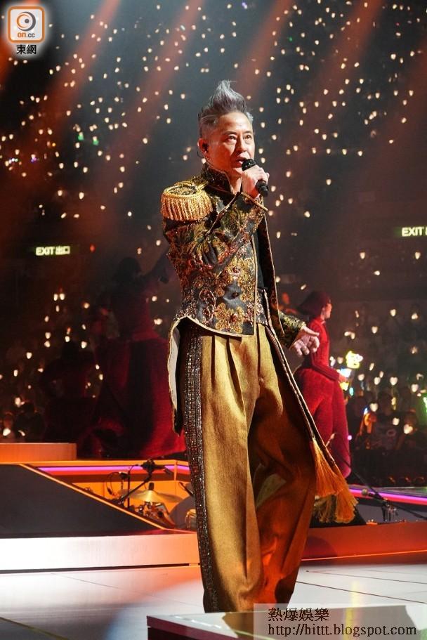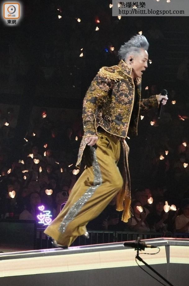 草蜢演唱會舞台為四面台不規則設計,當中央的巨型LED柱型屏幕升高後,分別身穿閃片金及銀色套裝的三子現身,先跳唱連串經典快歌逾9分鐘,炒熱全場,期間蔡一傑跳唱期間失重心,但未有跌親。