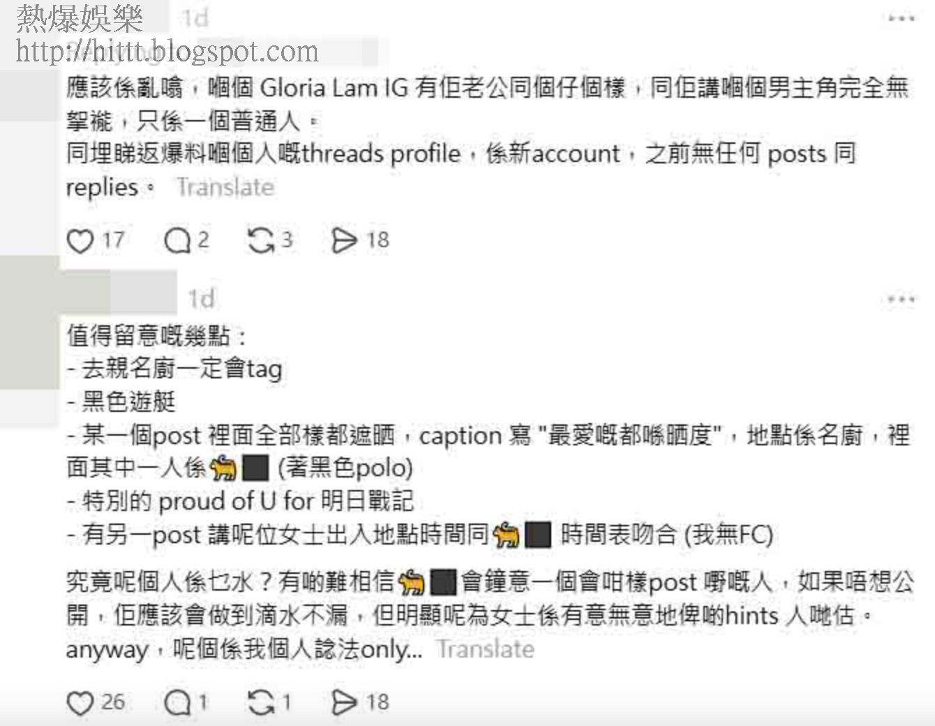 此外,網民認為二人的生活及旅遊足跡被指有驚人重疊,包括古天樂居於貝沙灣,而林淑茵的帖文也經常在貝沙灣打卡。而古天樂在曼谷設有公司,林淑茵亦頻繁飛往泰國,並在帖文中稱當地豪宅為「sweet home BKK」。有網民更整理出二人在2019年至2025年間,曾於相同時間點現身成都、倫敦、康城甚至越南,質疑道:「除非她是狂粉,不然這樣重複率太高了吧?」