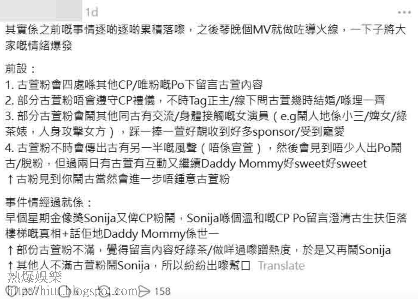 古天樂這次傳聞,源於古天樂與宣萱這對經典螢幕情侶的「CP粉」。有網民在Threads上指古天樂有穩定交往十多年的圈外女友,並公開了林淑茵的社交帳號。部分激動的「古宣CP」粉絲湧入其頁面留言攻擊,最終導致林淑茵將帳號轉為私人,並將頭像換成一張「精神健康熱線」的網頁截圖,似在表達無聲抗議。