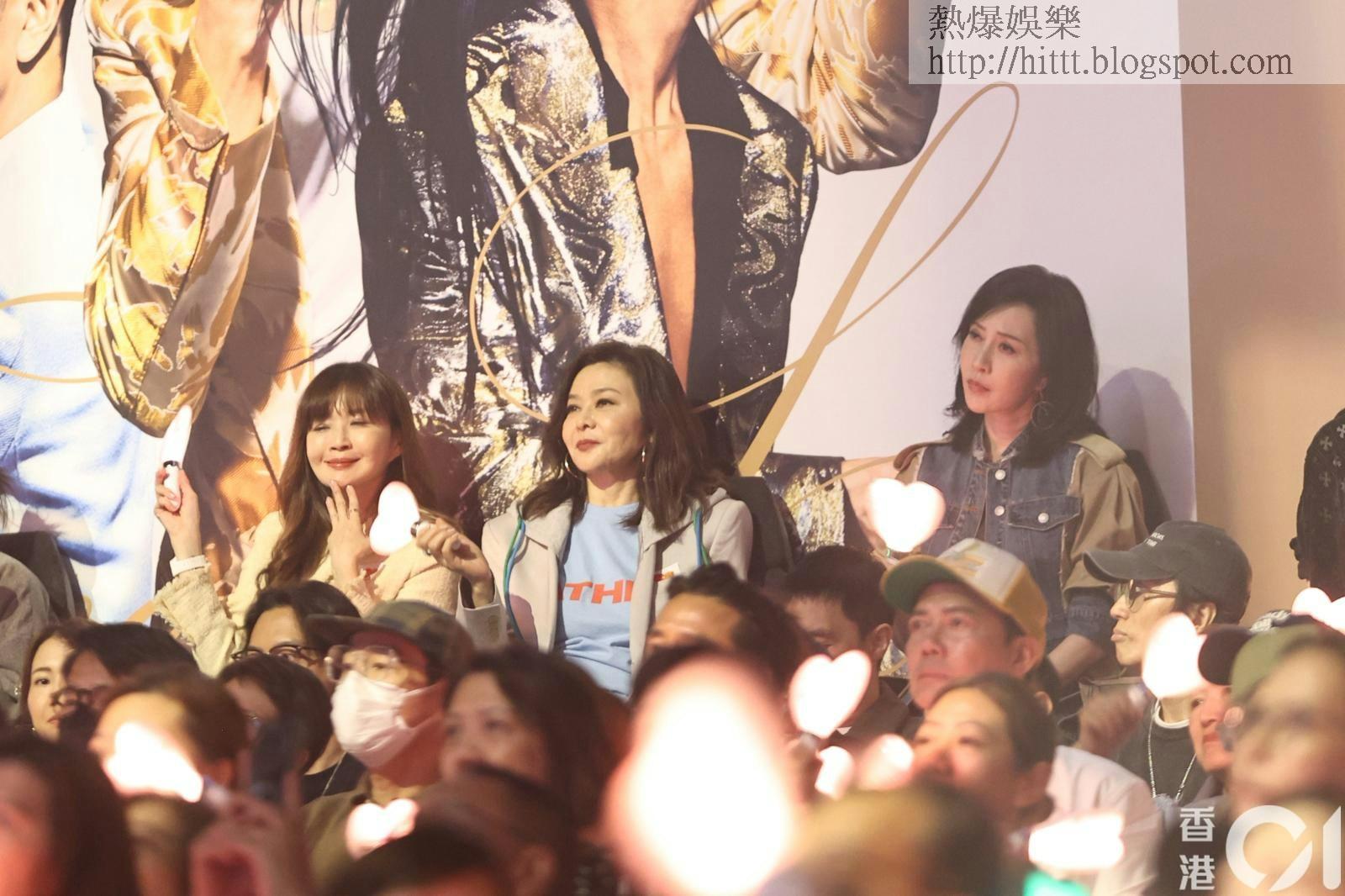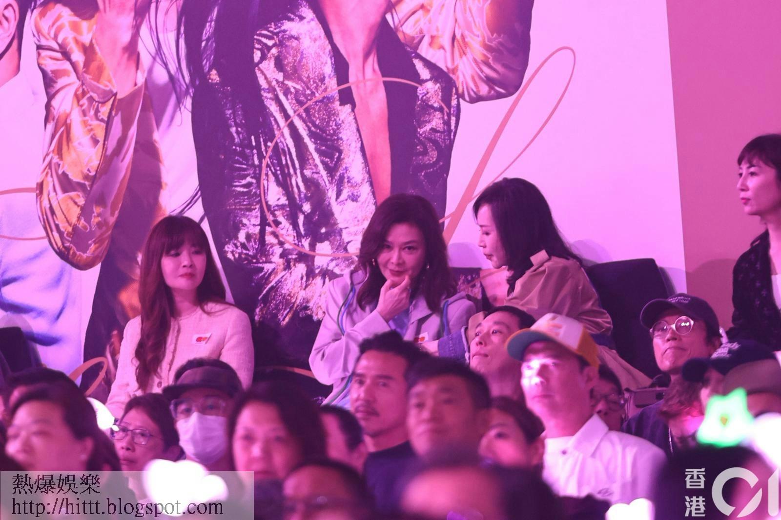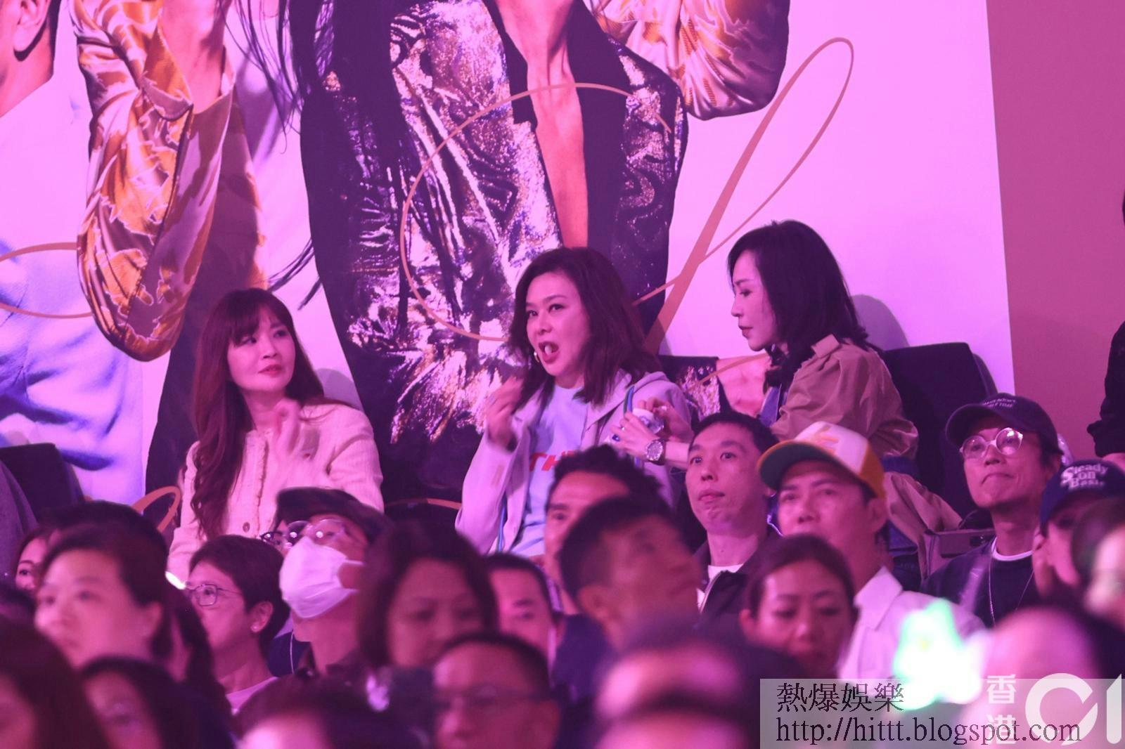 而另一位大美人關之琳亦低調現身VIP席,與好友顧紀筠同坐。關之琳今晚身穿一件圓領T-shirt,外搭一件灰色簡約外套,打扮休閒得來不失貴氣。現場見她與身旁的顧紀筠邊看表演邊傾偈,兩人手持愛心形狀的光棒,隨着音樂搖擺,顯得相當投入。而李嘉欣與關之琳兩位大美人難得同場鬥靚,也成為了草蜢演唱會台下的另一道美景。