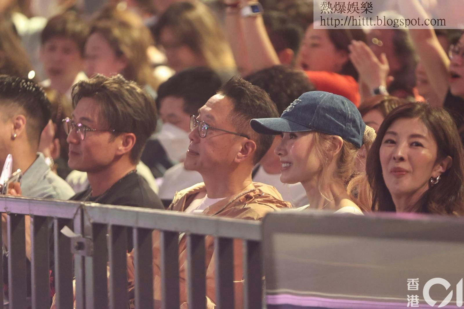 大美人李嘉欣今晚與老公許晉亨一同現身支持草蜢。染了一頭金髮的她,戴上深色牛仔Miu Miu Cap帽,並身穿一件綴有閃石裝飾的牛仔背心內搭白背心,打扮得非常年輕且充滿活力。兩夫婦及家姐坐在第一排位置,面對傳媒鏡頭時,李嘉欣報以優雅微笑,心情極佳。