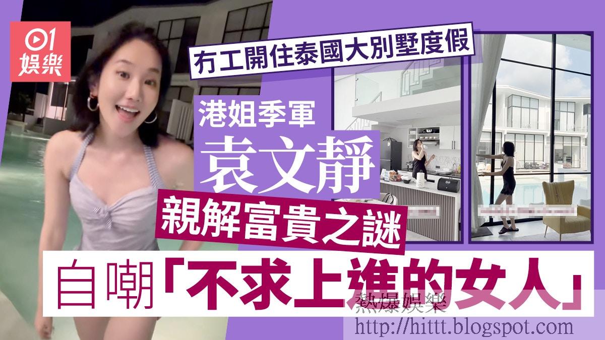 袁文靜曬出在純白大別墅度假的片段,落地玻璃窗外即有大泳池,袁文靜一人住綽綽有餘。來到海島自然不少得落水暢游,她穿上泳衣大曬好身材,生活優悠。說到如何開飯,袁文靜解釋TVB不限制藝人從事公共媒體以外的工作,言下之意可靠其他門路搵食。