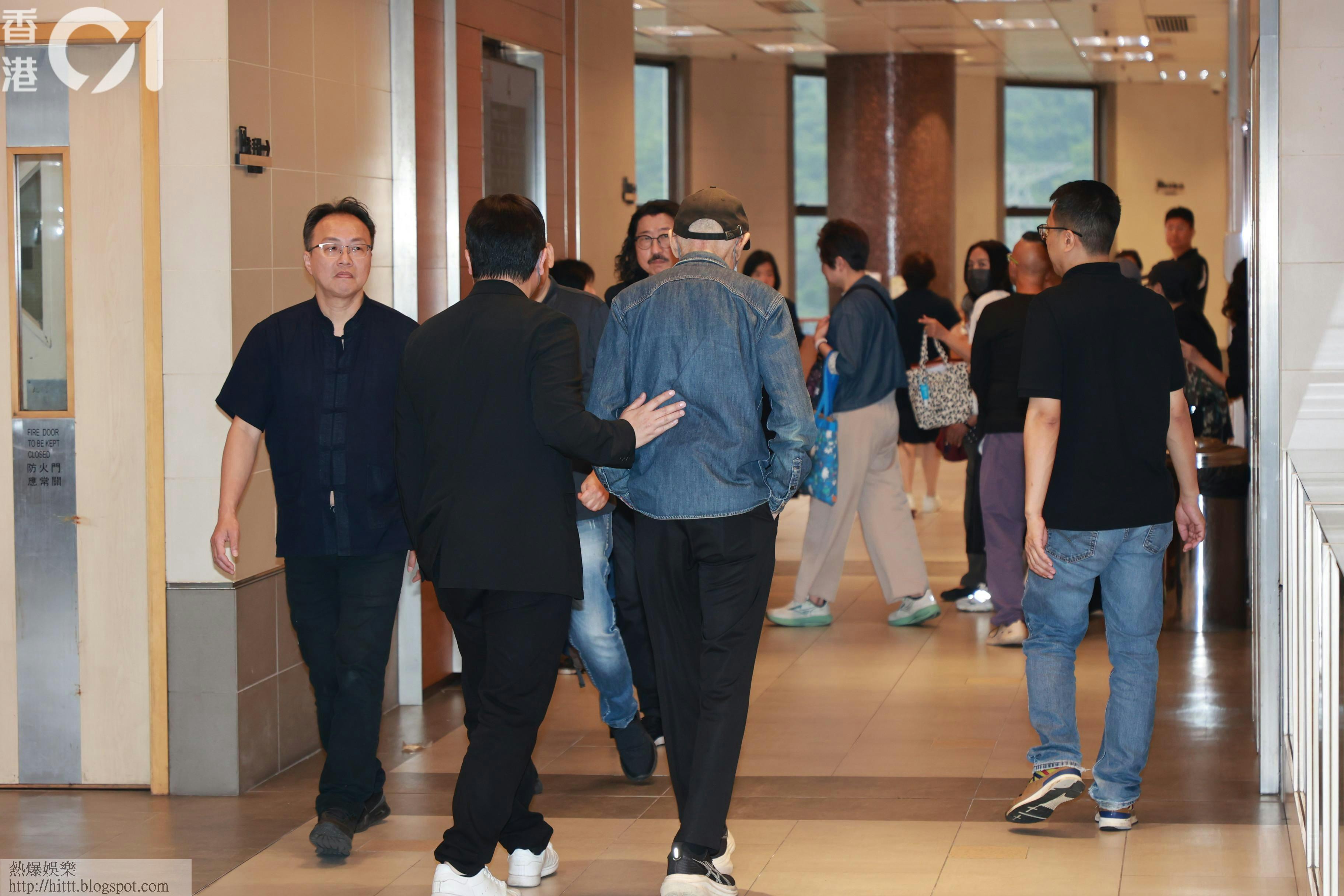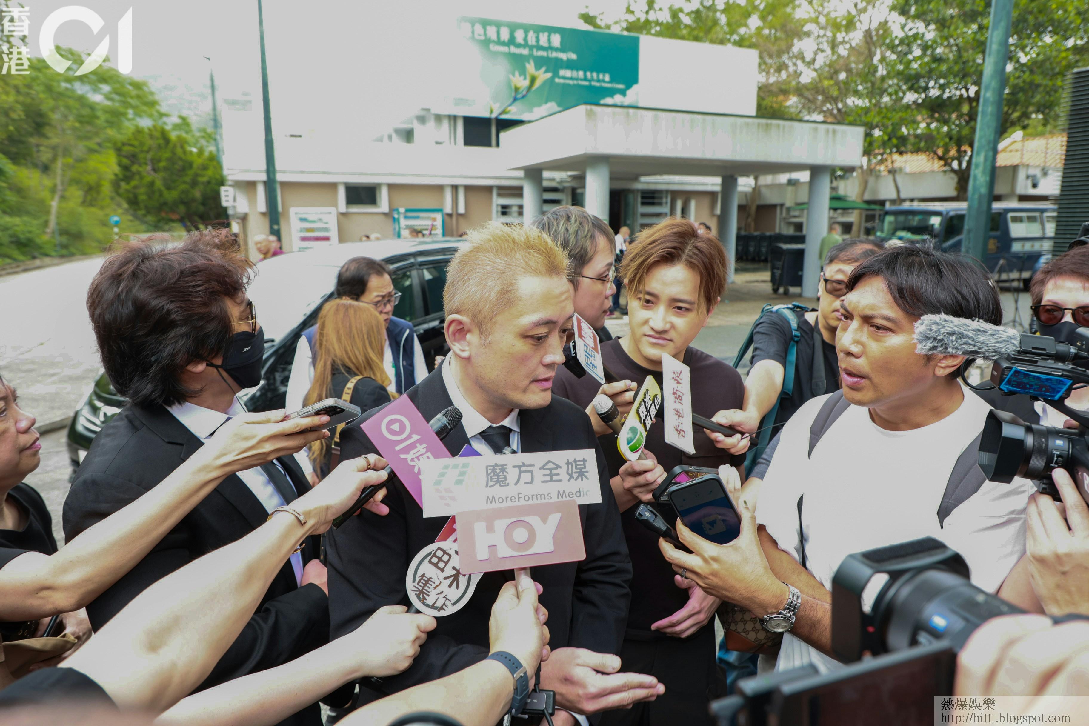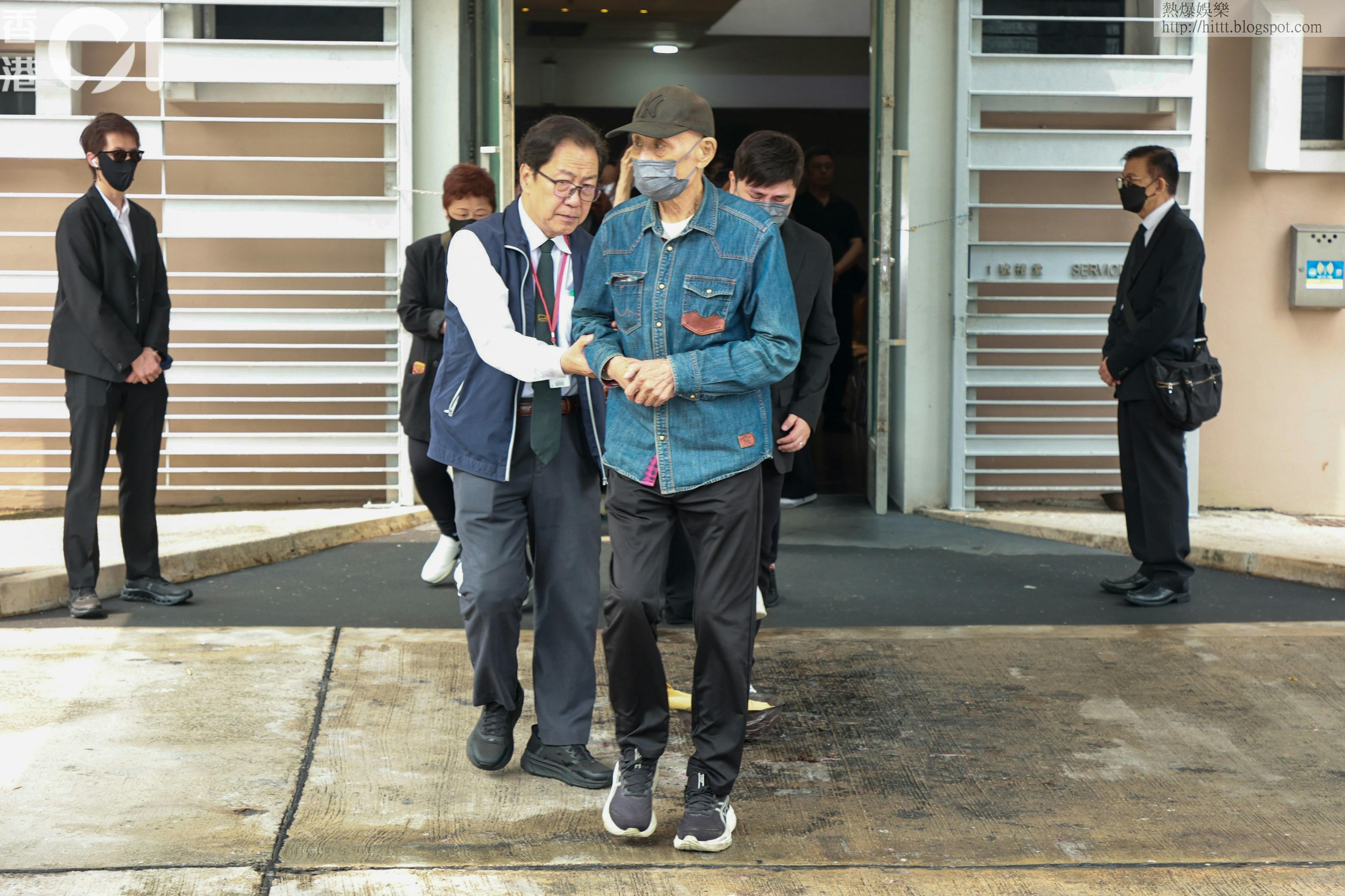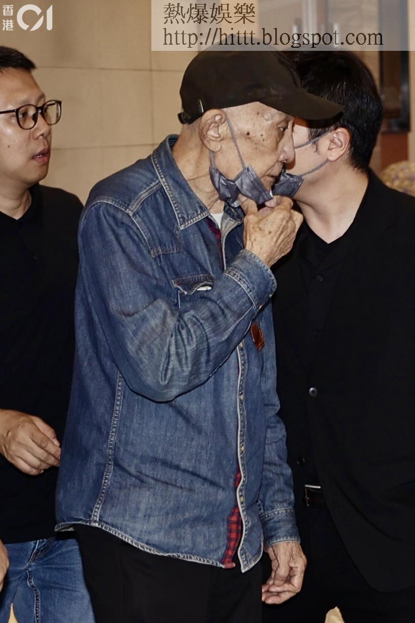 面對傳媒追問妻子被拒門外一事,李泳豪雙眼通紅,僅以「今日唔回應」婉拒,全程全心攙扶身體虛弱的鼎爺,父子情深。