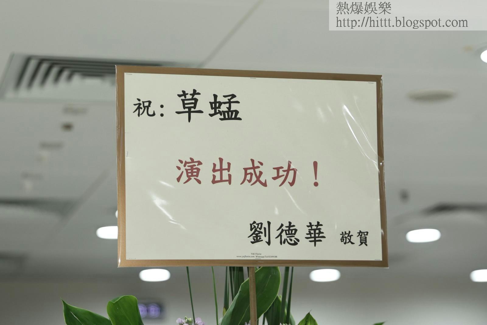 不少藝人送上花籃祝賀草蜢,當中劉德華的花籃在最顯眼處。(陳順禎 攝)