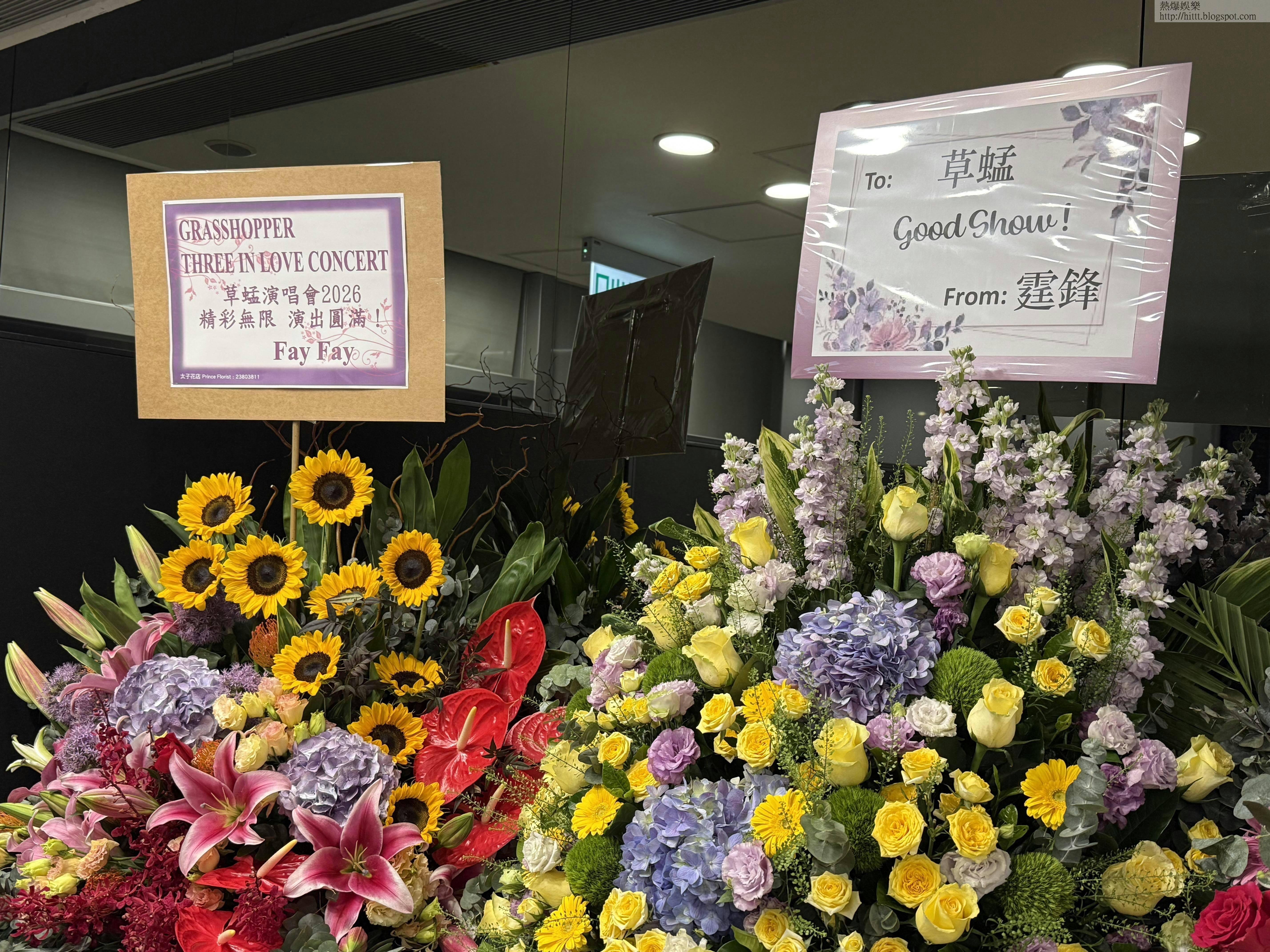 不少藝人送上花籃祝賀草蜢,包括有:郭富城、張敬軒、任賢齊、胡楓、張學友、謝霆鋒、張柏芝、張衛健、劉德華、梁詠琪、成龍等。除了花籃外,亦有一些比較特別的花籃,例如:零食籃及花式氣球,塞滿整個後台,可見他們三人人緣甚好。