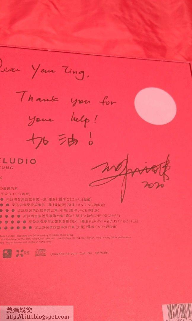 梁詠琪簽名CD贈Yan Ting︰Thank you for your help!