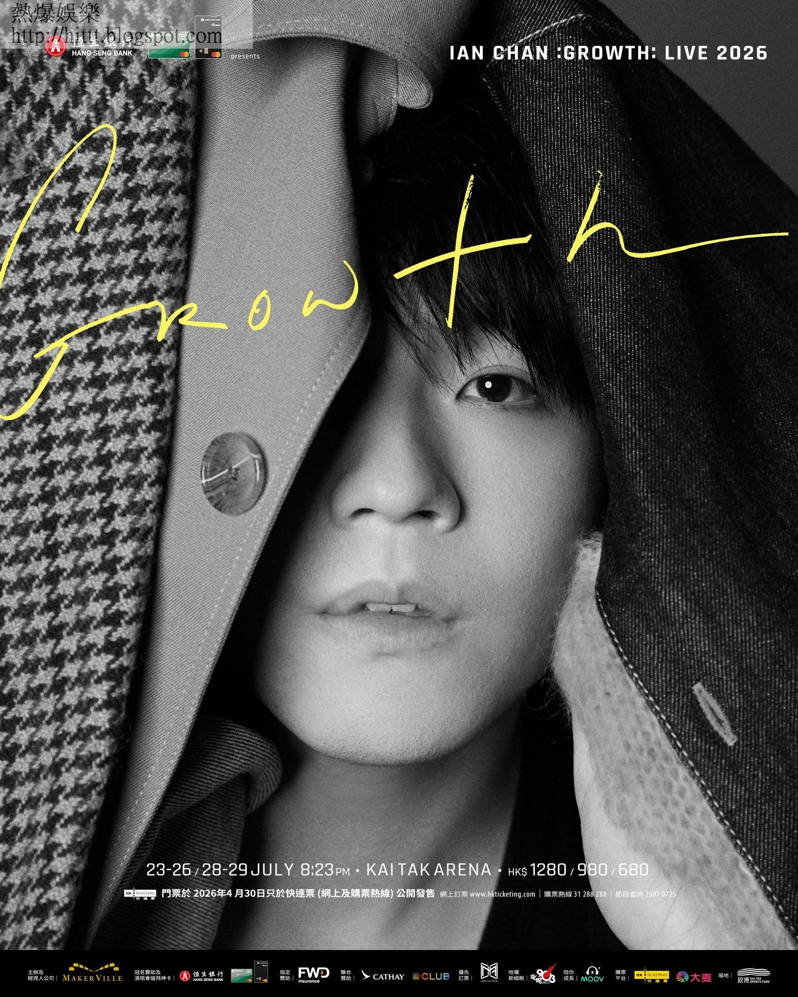 陳卓賢《IANCHAN:GROWTH:LIVE2026》演唱會海報。(IG@iancychan)IanChan陳卓賢演唱會2026香港|詳情演唱會日期 ...