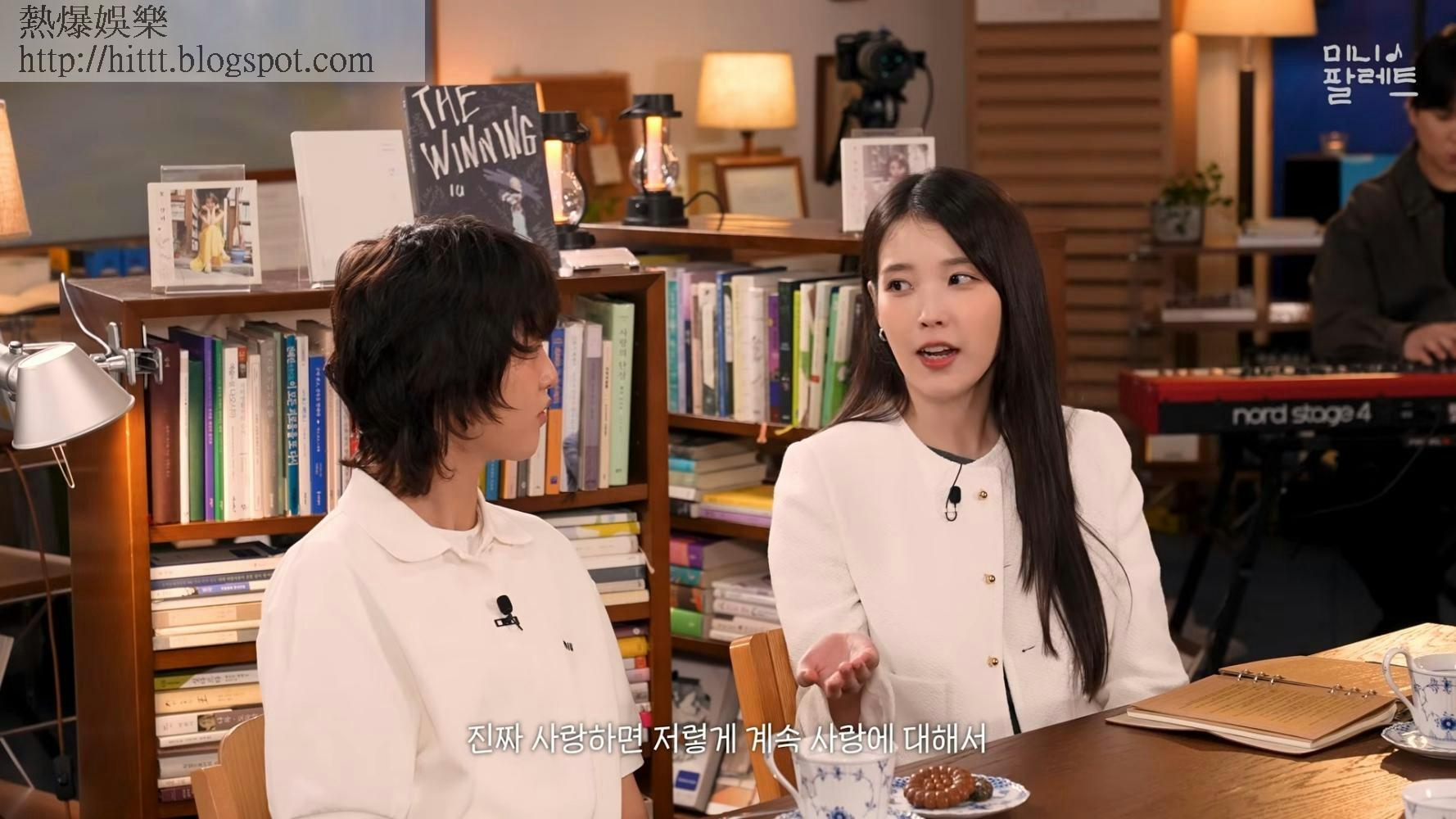 邊佑錫就認為:「因為更愛對方了,愛對方的心意變大才會這樣。」李妍先開玩笑說這樣是不是一開始愛對方的心意比較小,愛意才會有成長的空間,而IU這時候接話:
