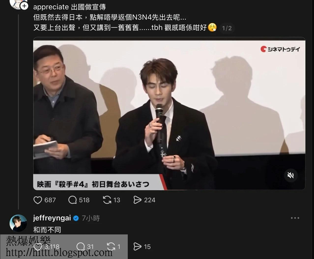 不過有香港網民就於Threads轉載了魏浚笙說日語的宣傳片段,發文寫道:「appreciate 出國做宣傳 但既然去得日本,點解唔學返個N3N4先出去呢... 又要上台出聲,但又講到一舊舊舊......tbh 觀感唔係咁好!」對魏浚笙的努力付出提出了質疑。不過不少網民就力撐魏浚笙,並對於這位提出質疑的網民表示反感,認為他要求太高,更指不少外國藝人來港出席活動用廣東話打招呼也不是說得好準,不明白對方為何要求Jeffrey要有N3N4水平。魏浚笙亦有留意該則帖文,並禮貌地回覆說:「和而不同。」盡顯修養。