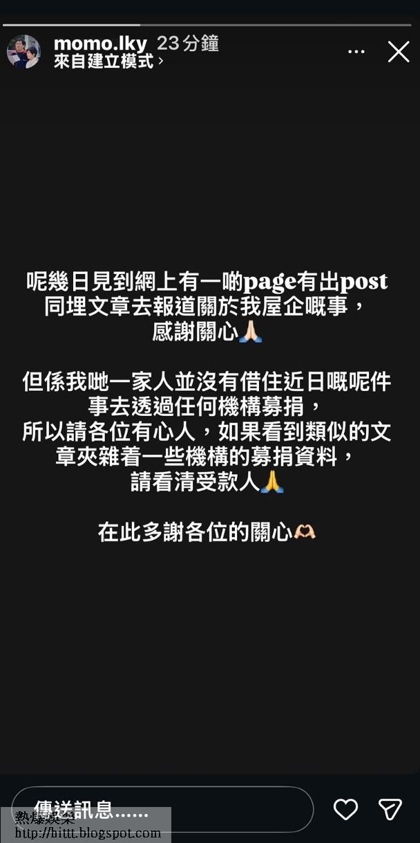 在承受喪父之痛的時刻,阿Mo繼早前於社交網將頭像轉為童年時的父子合照,以低調方式悼念父親後,今日(28日)再次於發布帖文。他感謝外界的關心:「呢幾日見到網上有一啲page有出post同埋文章去報道關於我屋企嘅事,感謝關心。」之後他隨即鄭重澄清一個重要訊息:「但係我哋一家人並沒有借住近日嘅呢件事去透過任何機構募捐。所以請各位有心人,如果看到類似的文章夾雜着一些機構的募捐資料,請看清受款人。」最後再次多謝大家關心。