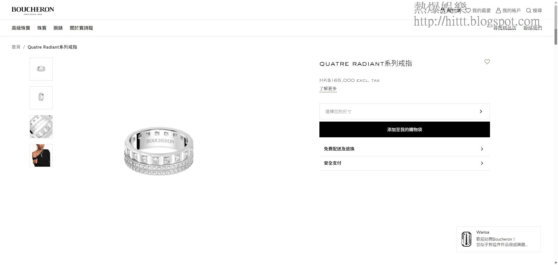 除了鑽戒,兩人的寶詩龍(Boucheron)對戒亦同樣吸睛。據悉男方配戴的是較為簡約的Quatre Black系列(約4.3萬港元),而阿Sa配戴的女戒則為更顯貴氣的Quatre Radiant系列(約16.5萬港元)。估計三枚戒指總值已突破65萬港元,足見林俊賢對阿Sa寵愛有加。