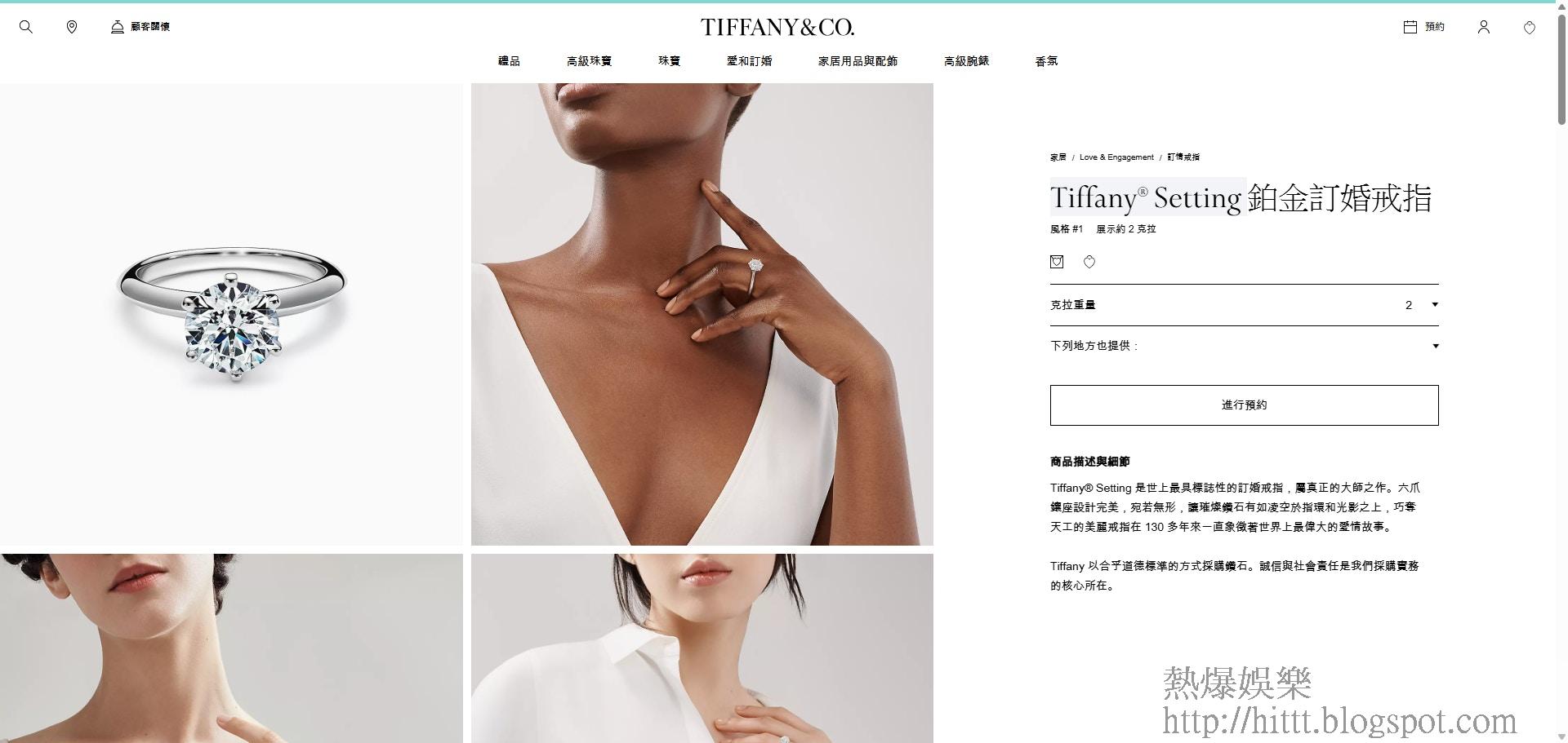 有網民「起底」阿Sa鑽戒為Tiffany Setting系列,目測至少達2克拉,售價約45萬港元起。(網上圖片)