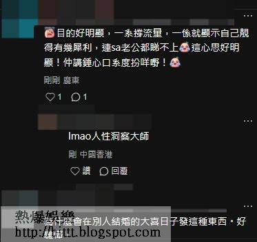 網民覺得女網紅趁阿sa結婚才出來蹭熱度。(小紅書圖片)