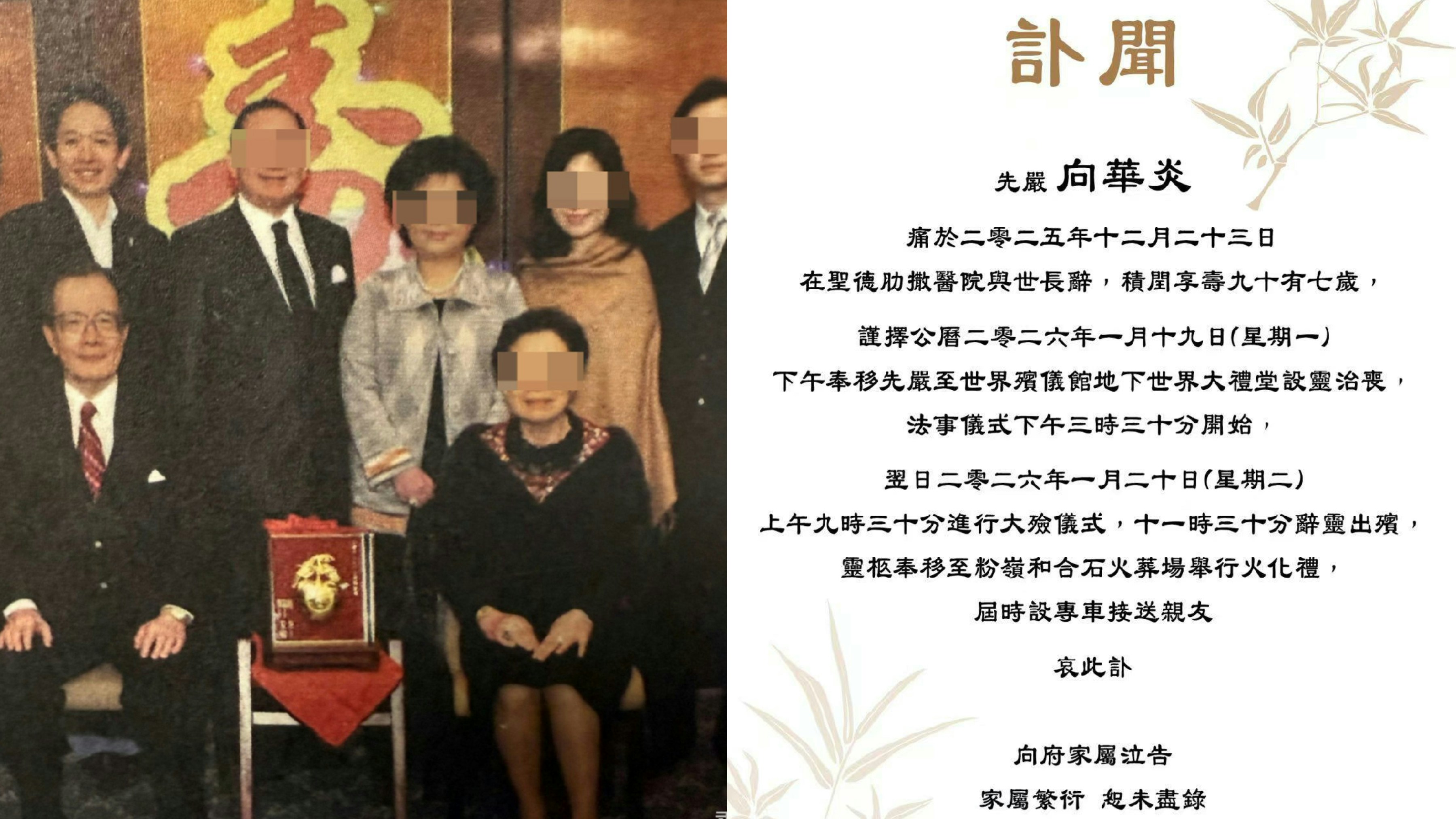 向華炎病逝|向氏家族發訃聞交代喪禮安排 1.19設靈翌日出殯 #向氏 #向華炎