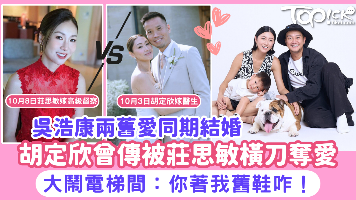 昔日情敵|吳浩康兩舊愛胡定欣莊思敏同期結婚 傳兩女曾為男方大鬧電梯間:你着我舊鞋咋 #吳浩康 #胡定欣 #莊思敏 #莊鍶敏